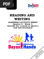 Reading and Writing Skills: Text and Text Connections. Department of Education Alternative Delivery Mode. First Edition, 2020