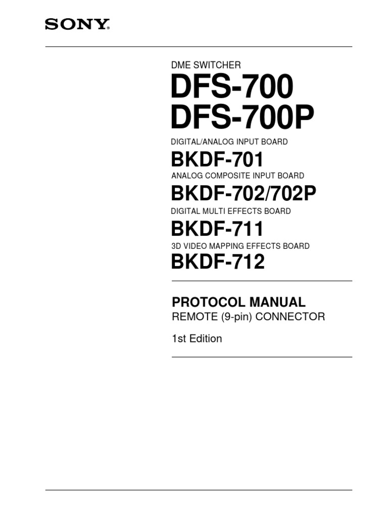 The communication protocol of the DFS-700/700P conforms to the Sony switcher protocol. However,