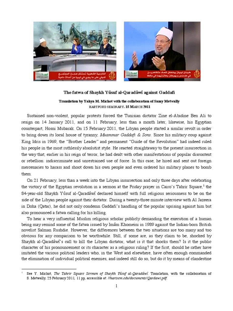 The Fatwa of Shaykh Yûsuf Al-Qaradâwî Against Gaddafi