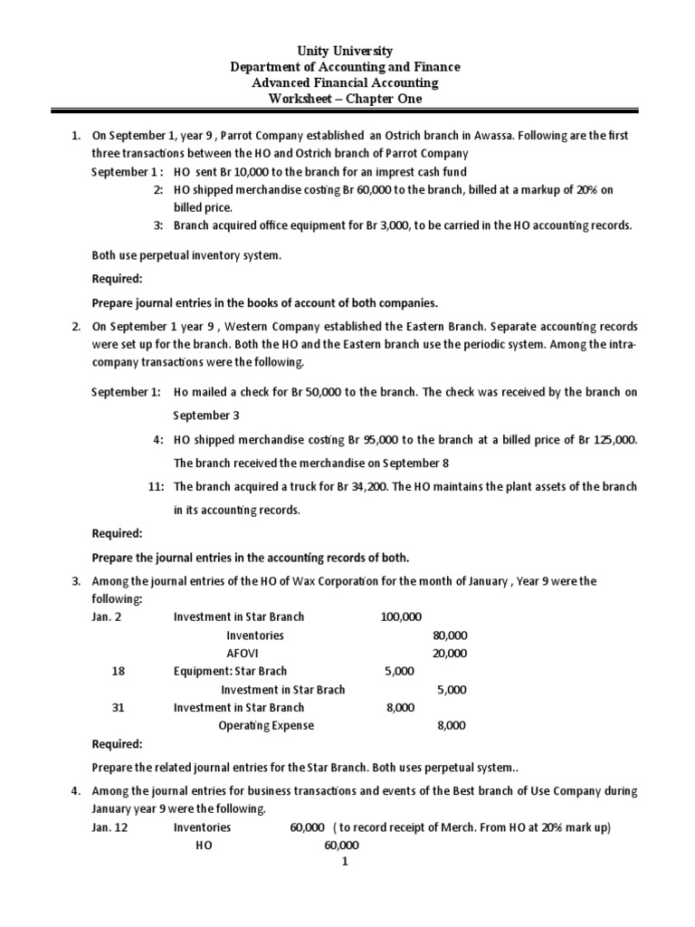 1. On September 1, year 9 , Parrot Company established an Ostrich branch in Awassa. Following are the first
