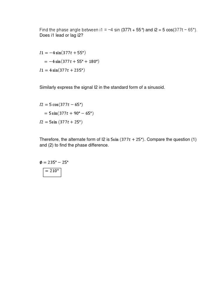 Therefore, the alternate form of I2 is 5sin(377𝑡 + 25°). Compare the question (1)