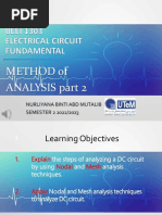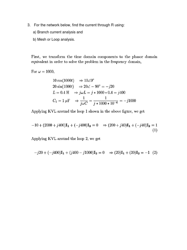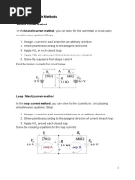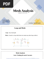 The document discusses finding the current through resistor R in a network using both branch current analysis and mesh analysis. It states it will use mesh analysis to solve the problem.