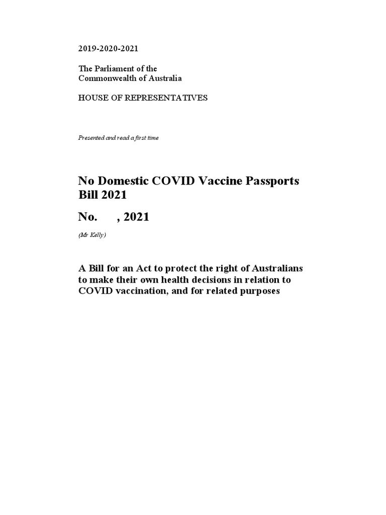 2 No Domestic COVID Vaccine Passports Bill 2021 No. , 2021