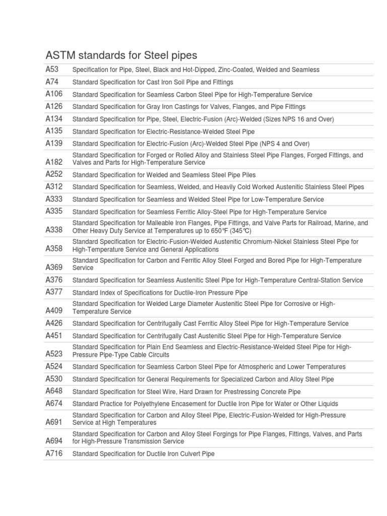 ASTM standards for Steel pipes