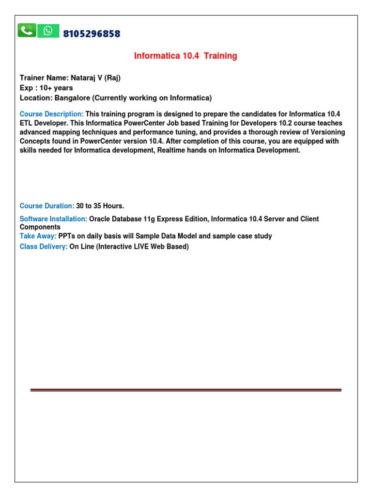 Course Description: This training program is designed to prepare the candidates for Informatica 10.4