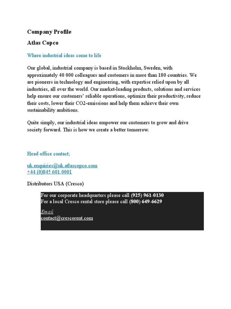 Atlas Copco has an extensive network of direct sales and distributors across the