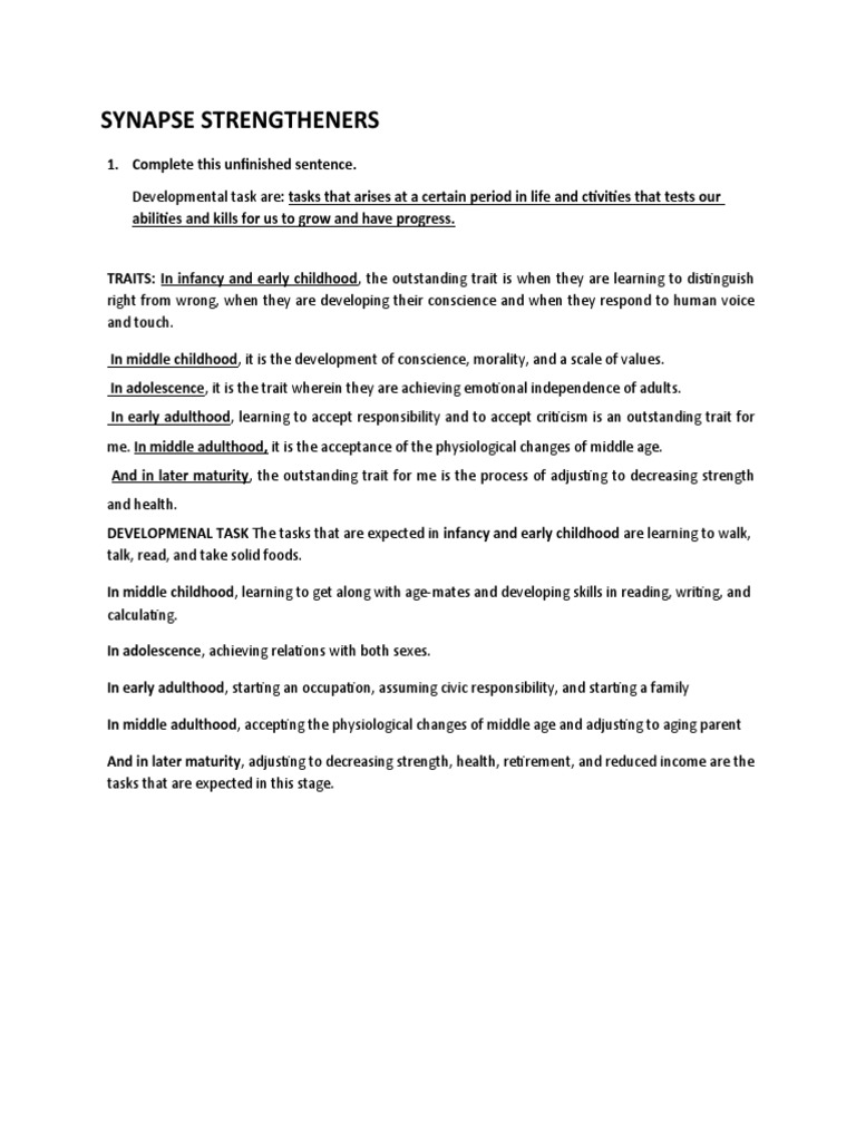 Developmental task are: tasks that arises at a certain period in life and ctivities that tests our