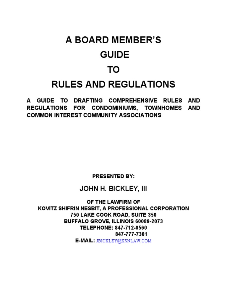 A BOARD MEMBER'S GUIDE TO RULES AND REGULATIONS