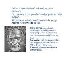 • John Dalton (1809) regarded the atom as a hard, dense and smallest individual