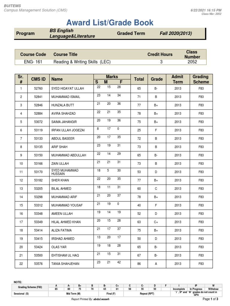 CMS ID Name Total Grade