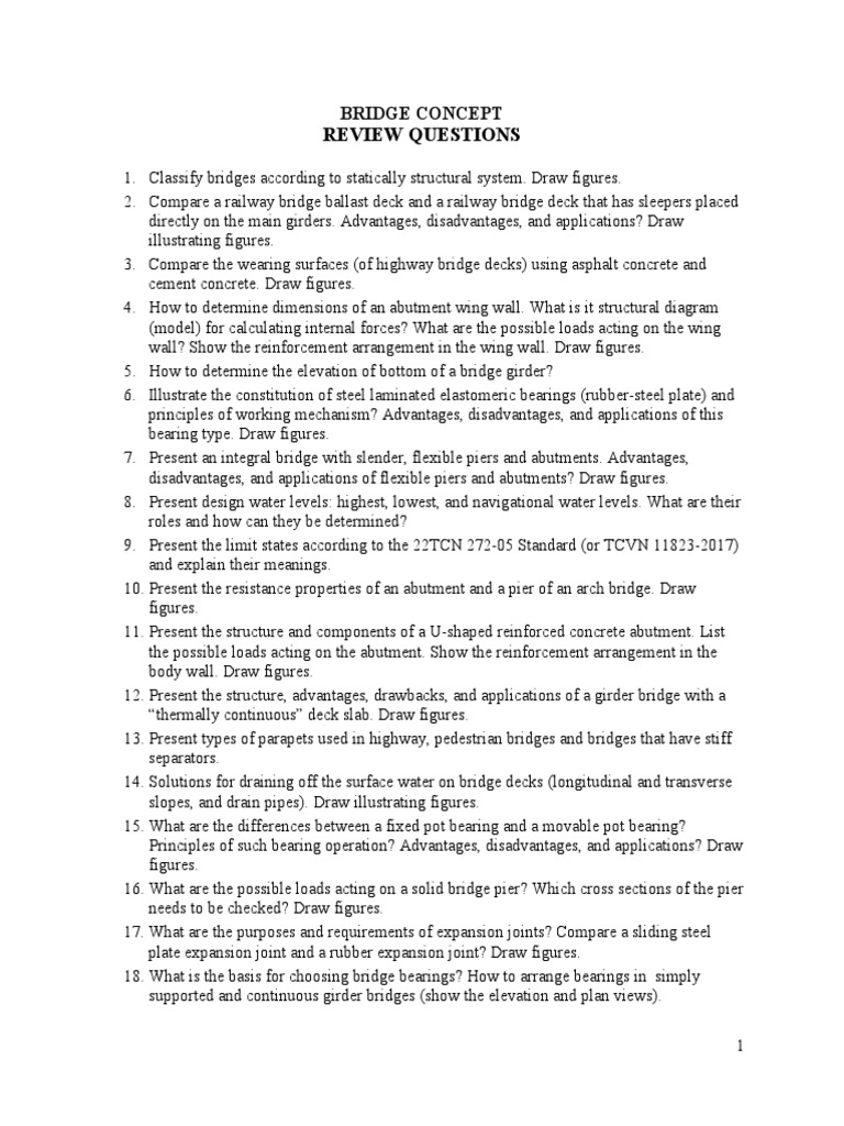 1. Classify bridges according to statically structural system. Draw figures.