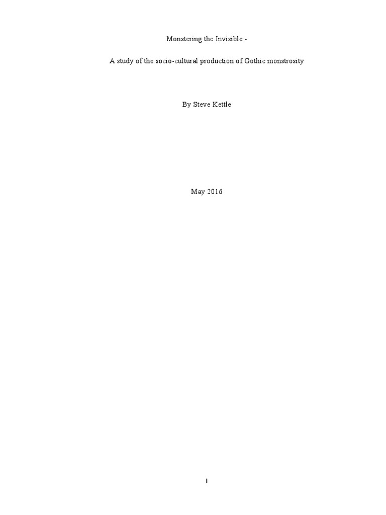 culture and therefore the visibility of the monster? For the purposes of this study I will