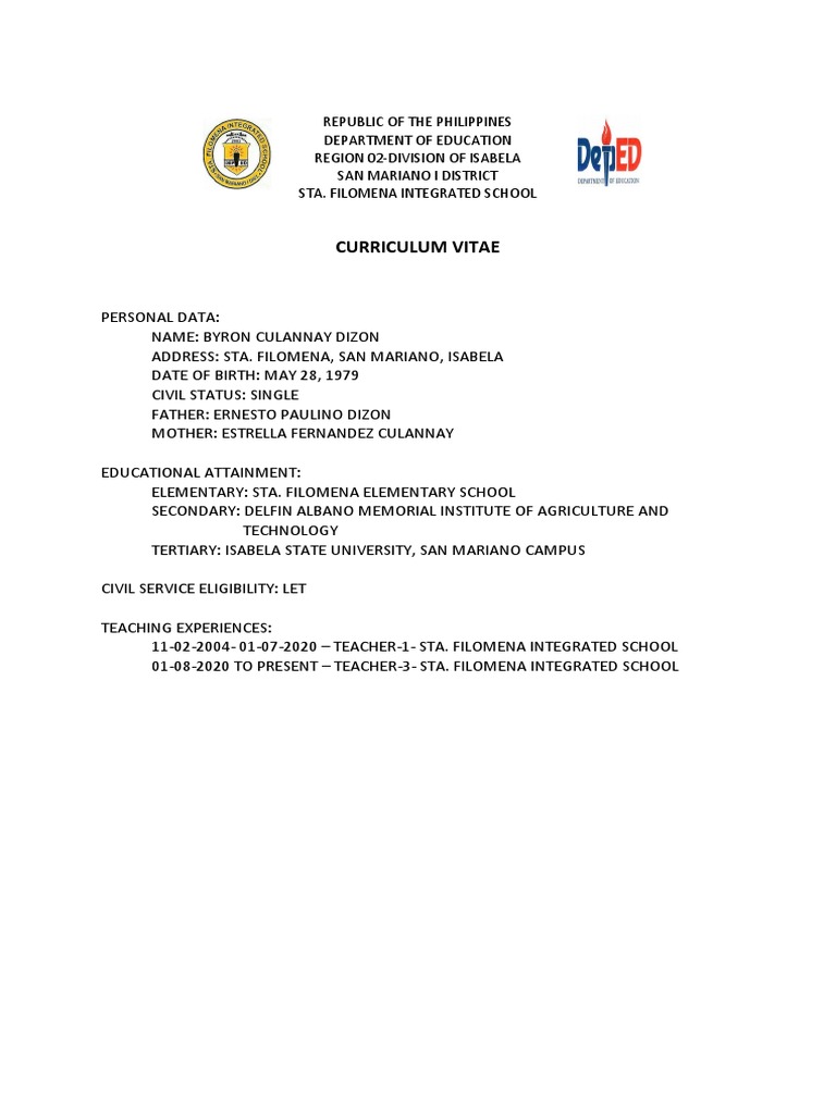 Byron Dizon's Teaching CV and Reports