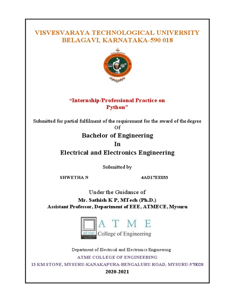 Engineering in Electrical and Electronics Engineering, of the Visvesvaraya