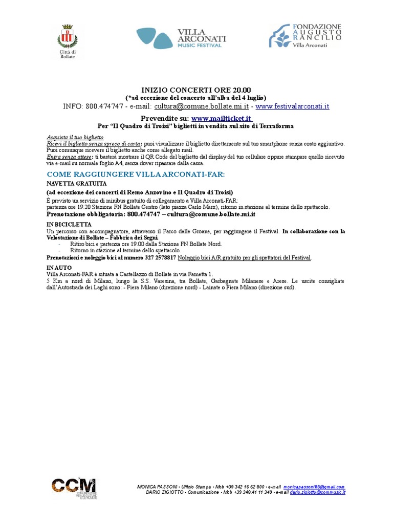 INFO: 800.474747 - e-mail: cultura@comune.bollate.mi.it - www.festivalarconati.it