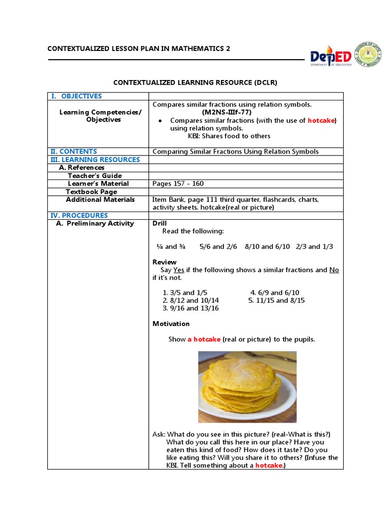 CONTEXTUALIZED LESSON PLAN IN MATHEMATICS 2