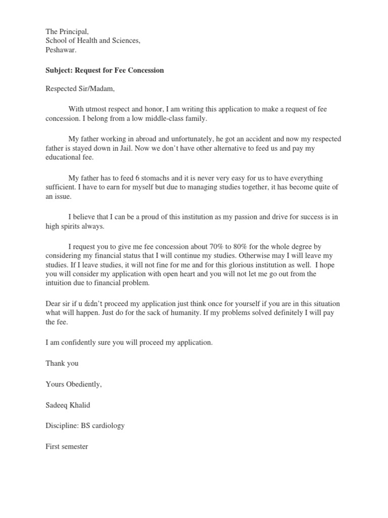 With utmost respect and honor, I am writing this application to make a request of fee