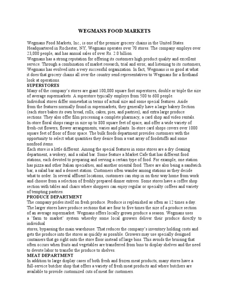 of an average supermarket. Wegmans offers locally grown produce a season. Wegmans uses