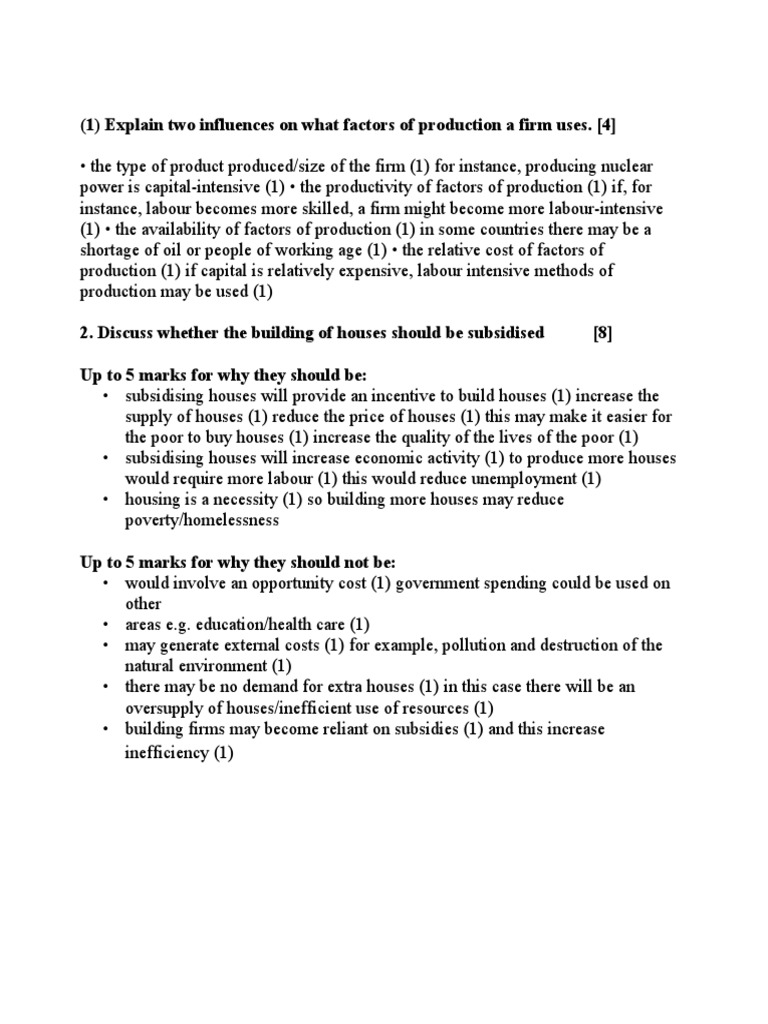 2. Discuss whether the building of houses should be subsidised [8]