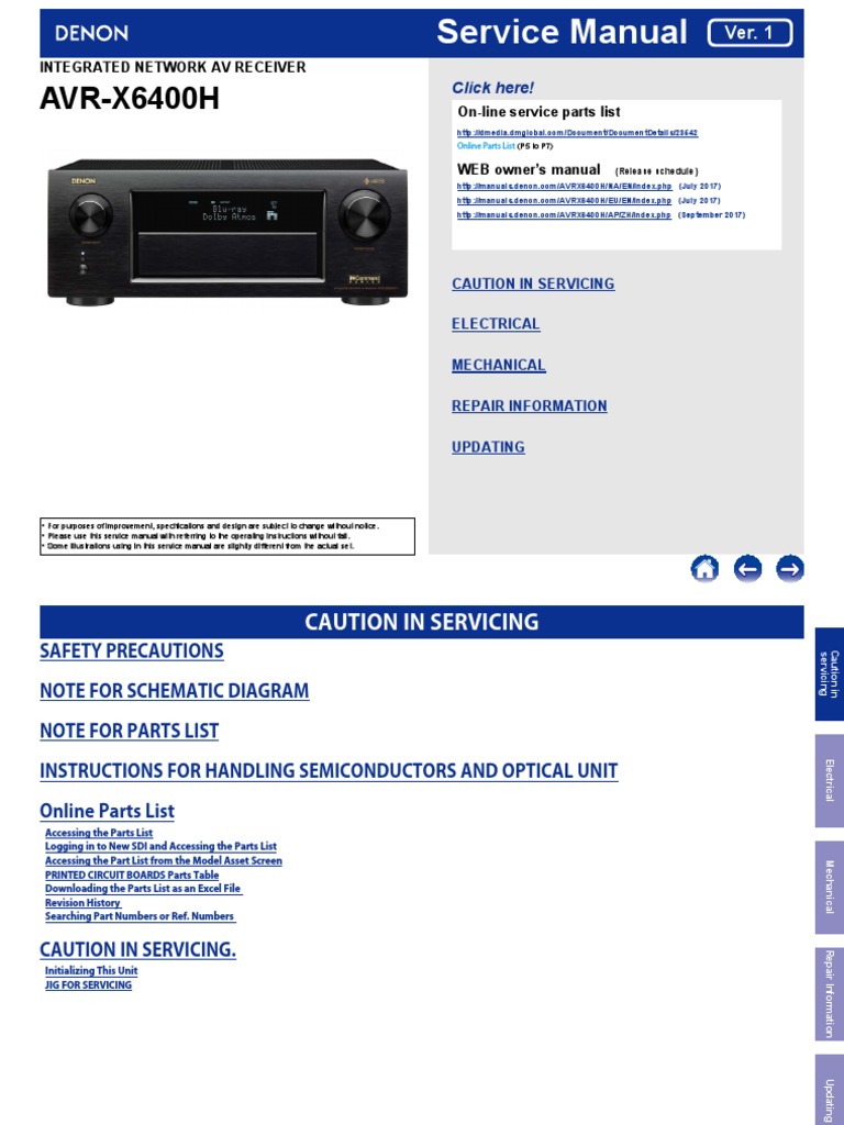AVR-X6400H On-line service parts list