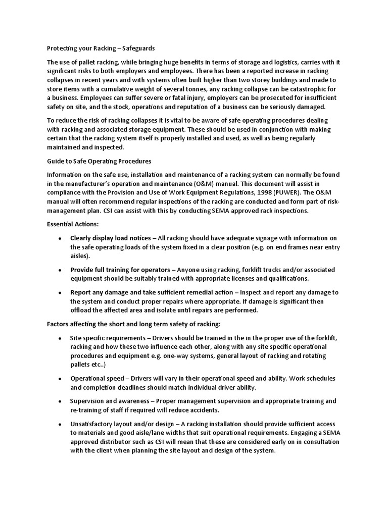 and use of pallet racking. If you have any doubts or concerns regarding its use or application then