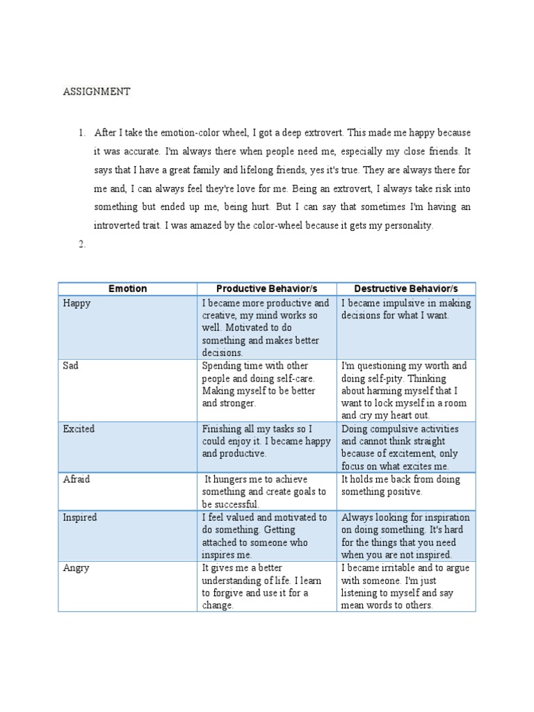1. After I take the emotion-color wheel, I got a deep extrovert. This made me happy because