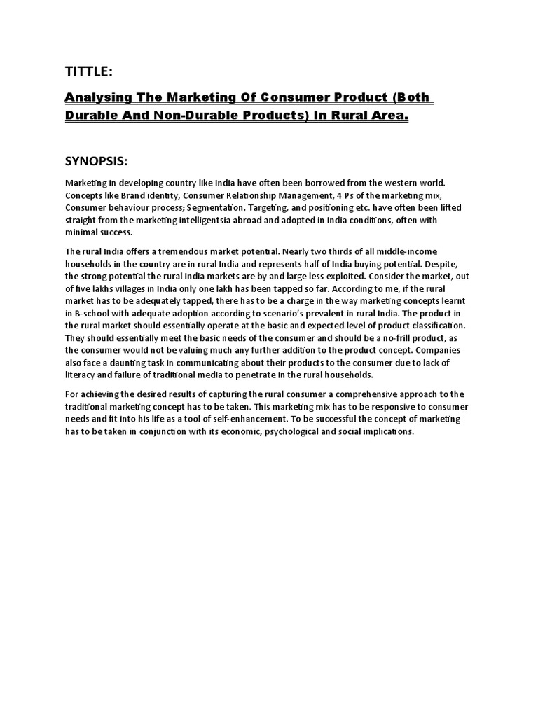 Durable And Non-Durable Products) In Rural Area.