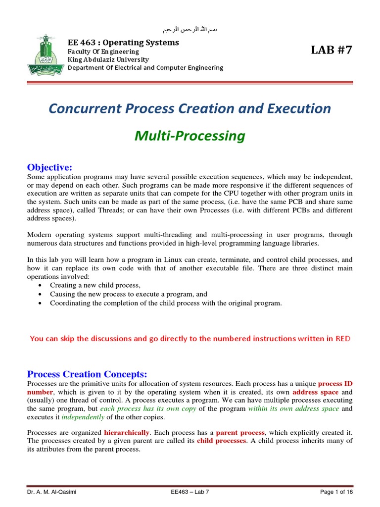 In this lab you will learn how a program in Linux can create, terminate, and control child processes, and