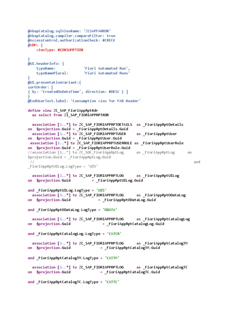 define view ZC_SAP_FioriAppRptHdr