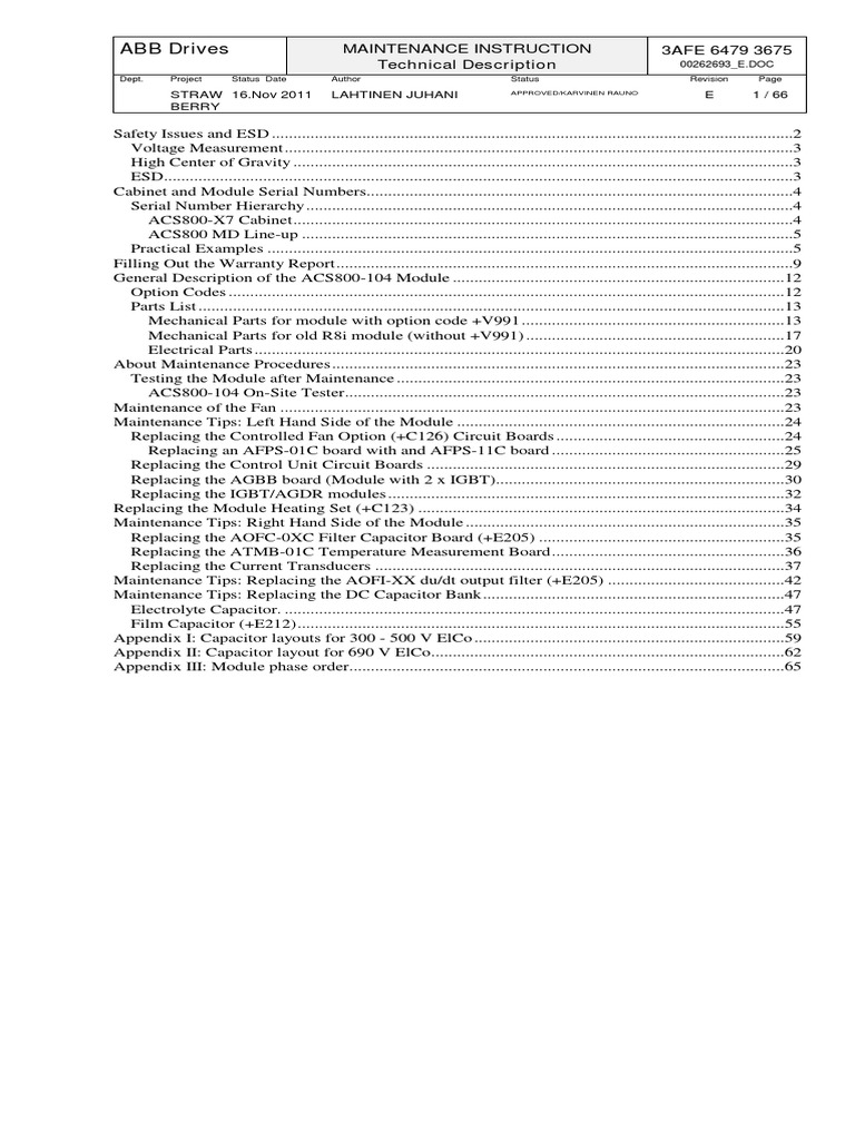 ABB Drives MAINTENANCE INSTRUCTION 3AFE 6479 3675