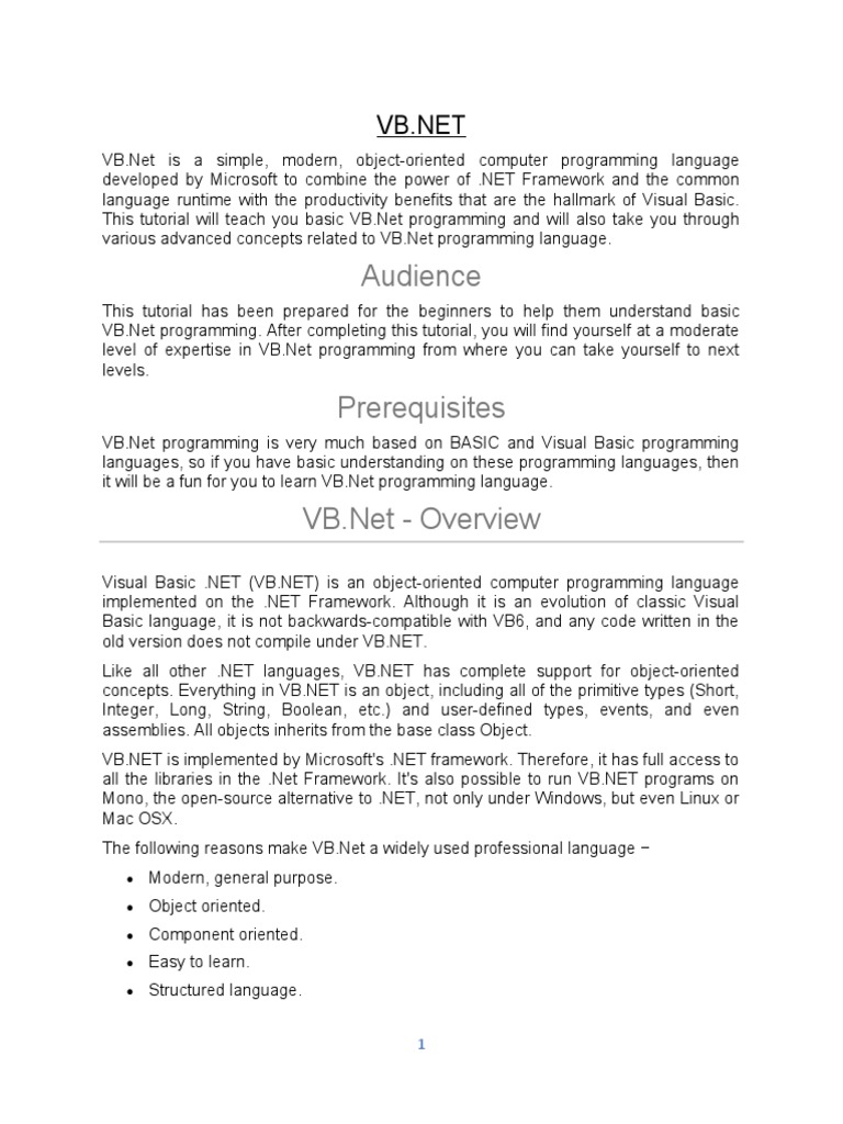 VB.Net programming. After completing this tutorial, you will find yourself at a moderate