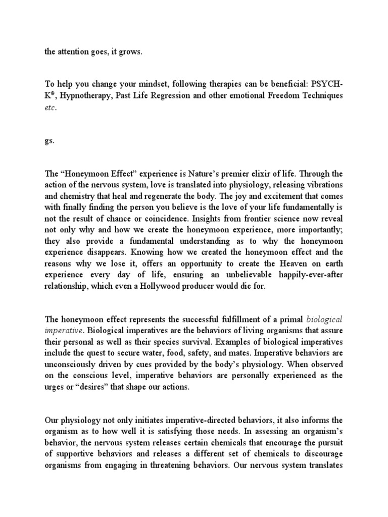 The “Honeymoon Effect” experience is Nature’s premier elixir of life. Through the