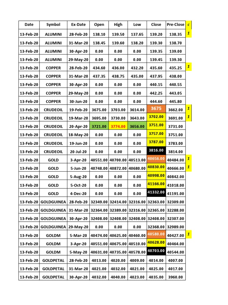 13-Feb-20 GOLDM 5-Mar-20 40474.00 40625.00 40460.00 40580.00 40427.00 1
