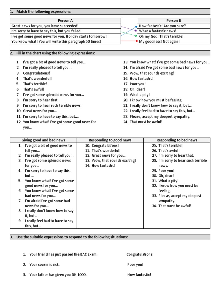 3. I’ve got some splendid news 13. Wow, that sounds exciting! 28. I’m sorry to hear such terrible