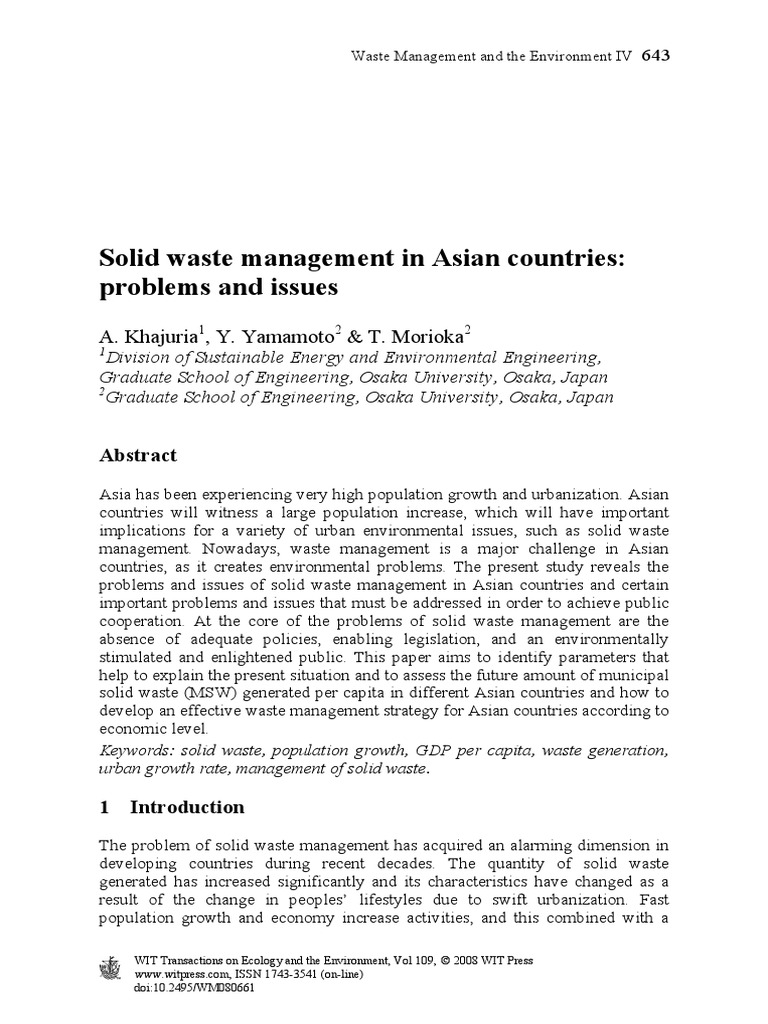 Keywords: solid waste, population growth, GDP per capita, waste generation,