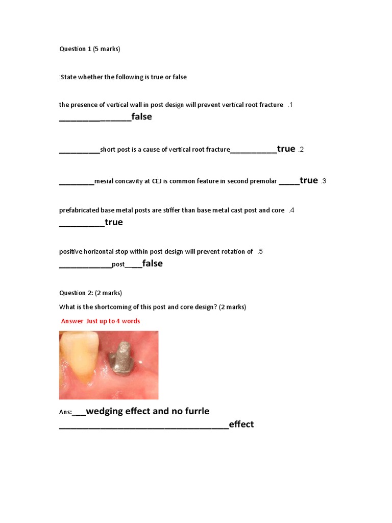 _______short post is a cause of vertical root fracture_________true .2