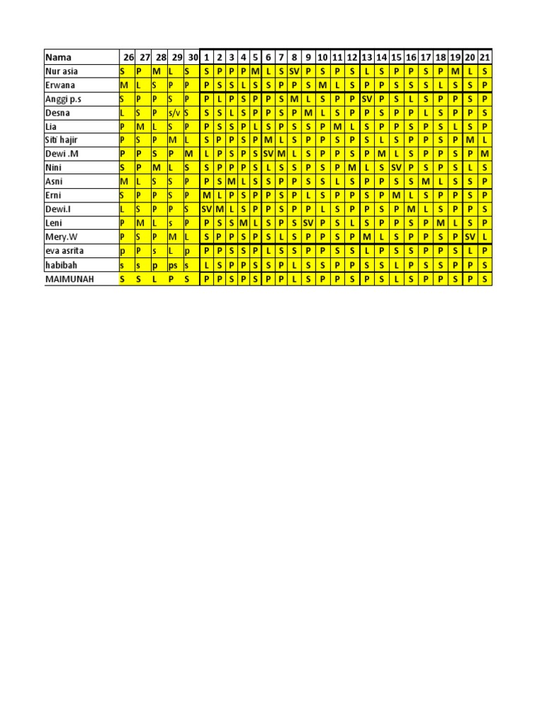 Nama 26 27 28 29 30 1 2 3 4 5 6 7 8 9 10 11 12 13 14 15 16 17 18 19 20 21