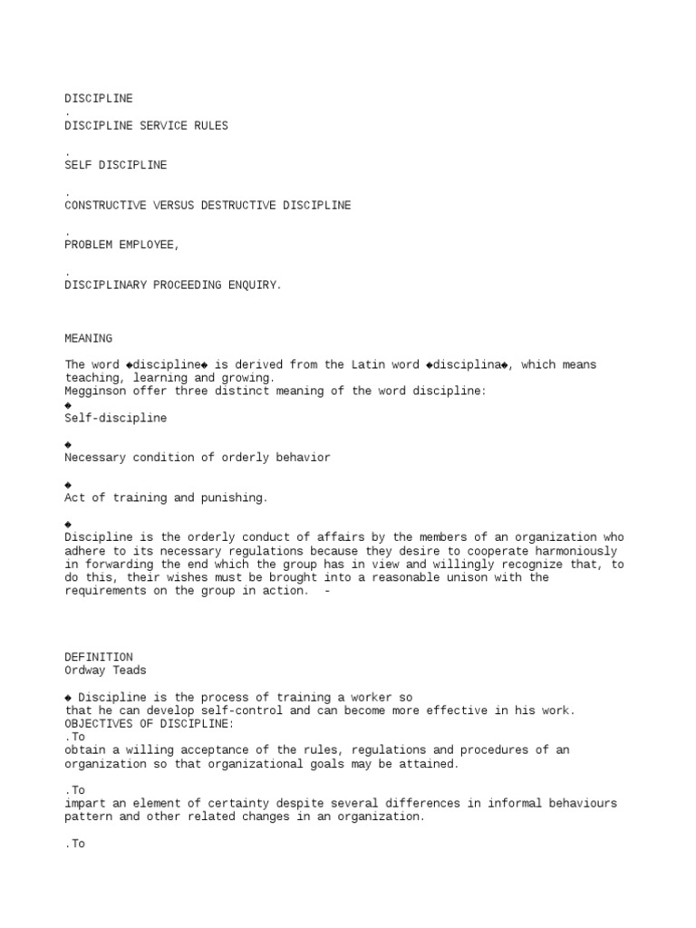 Discipline is the orderly conduct of affairs by the members of an organization who
