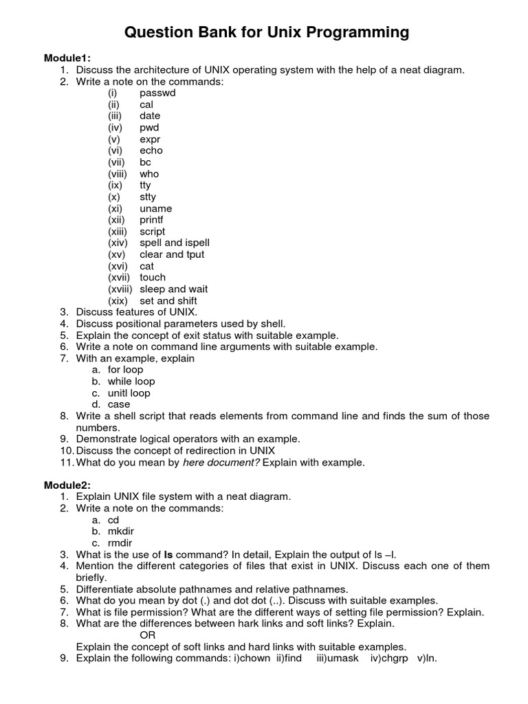 Question Bank for Unix Programming