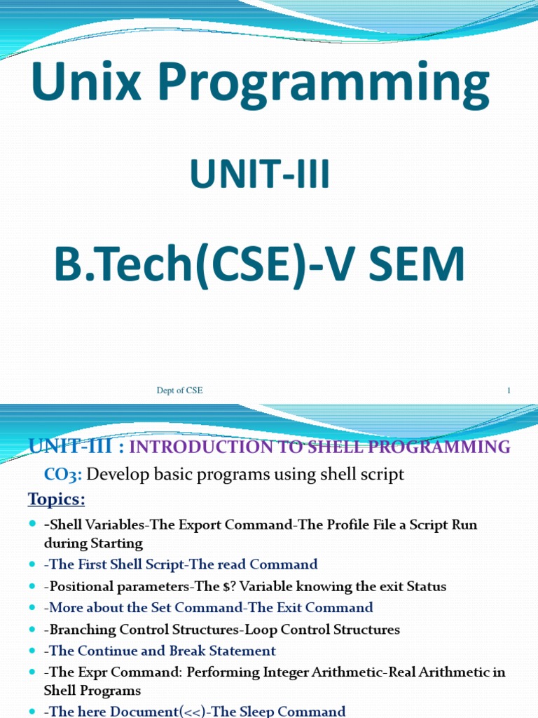 UNIT-III : INTRODUCTION TO SHELL PROGRAMMING