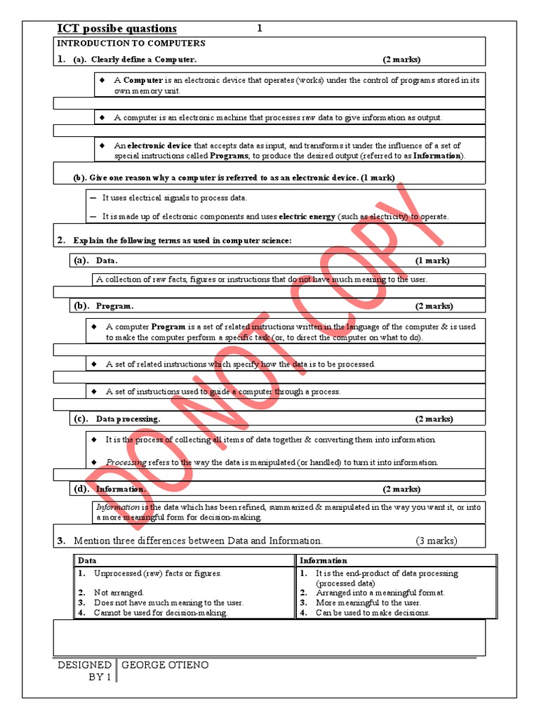 (b). Give one reason why a computer is referred to as an electronic device. (1 mark)