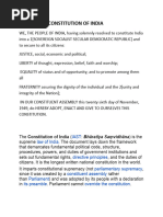 The Constitution of India is the supreme law of India. It is a living document, the permanent