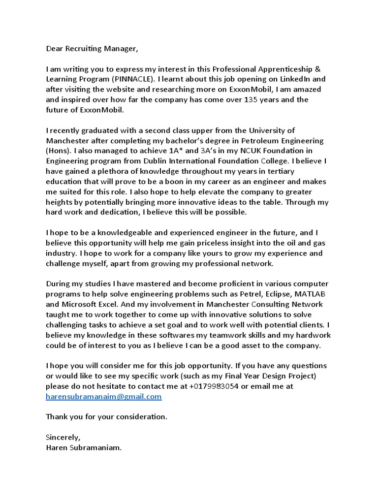 Dear Recruiting Manager,