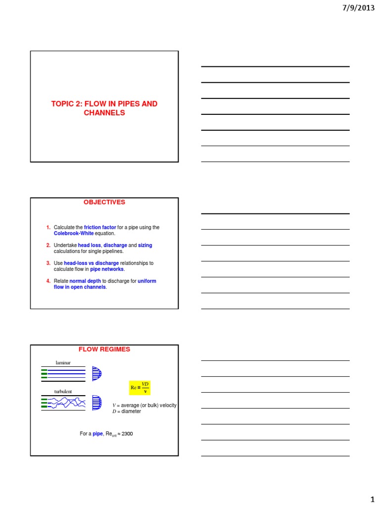 (c) the flow rate, Q, in terms of head loss and pipe diameter;