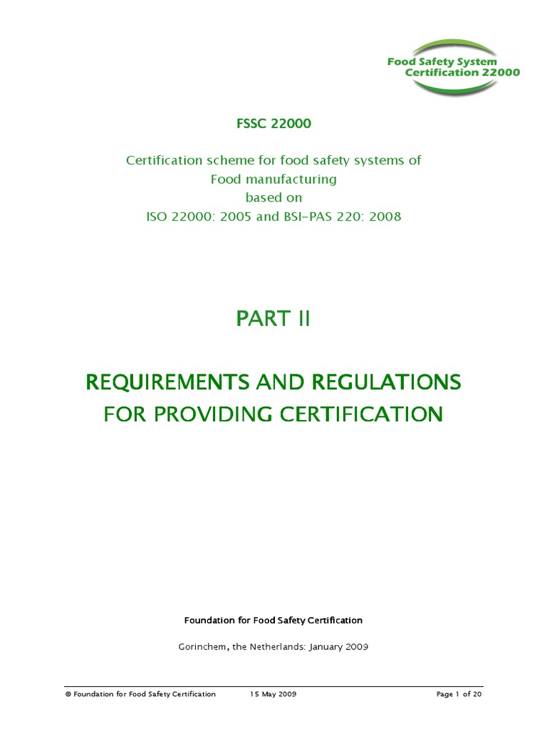 © Foundation for Food Safety Certification 15 May 2009 Page 1 of 20