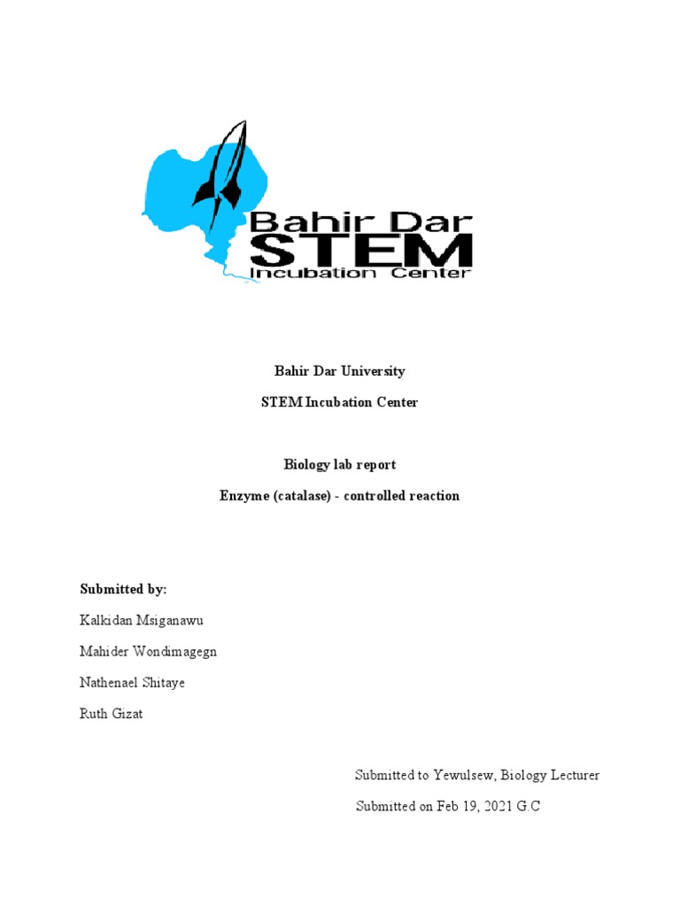 This experiment aims to measure the rate of an enzyme-controlled reaction