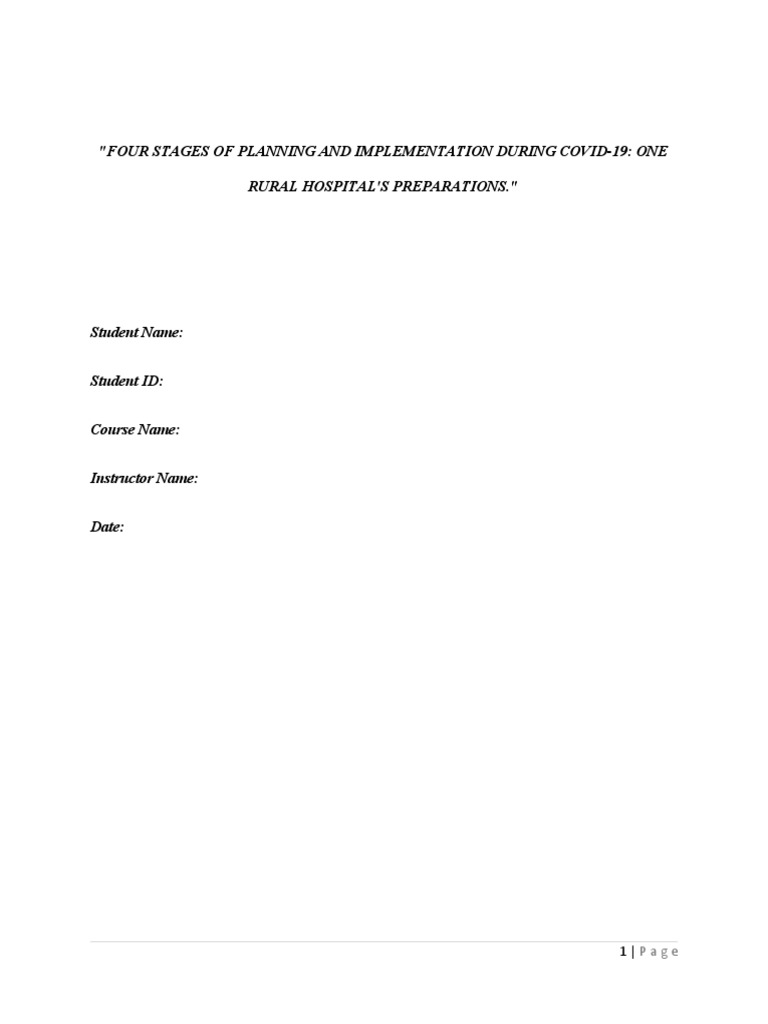 "FOUR STAGES OF PLANNING AND IMPLEMENTATION DURING COVID-19: ONE