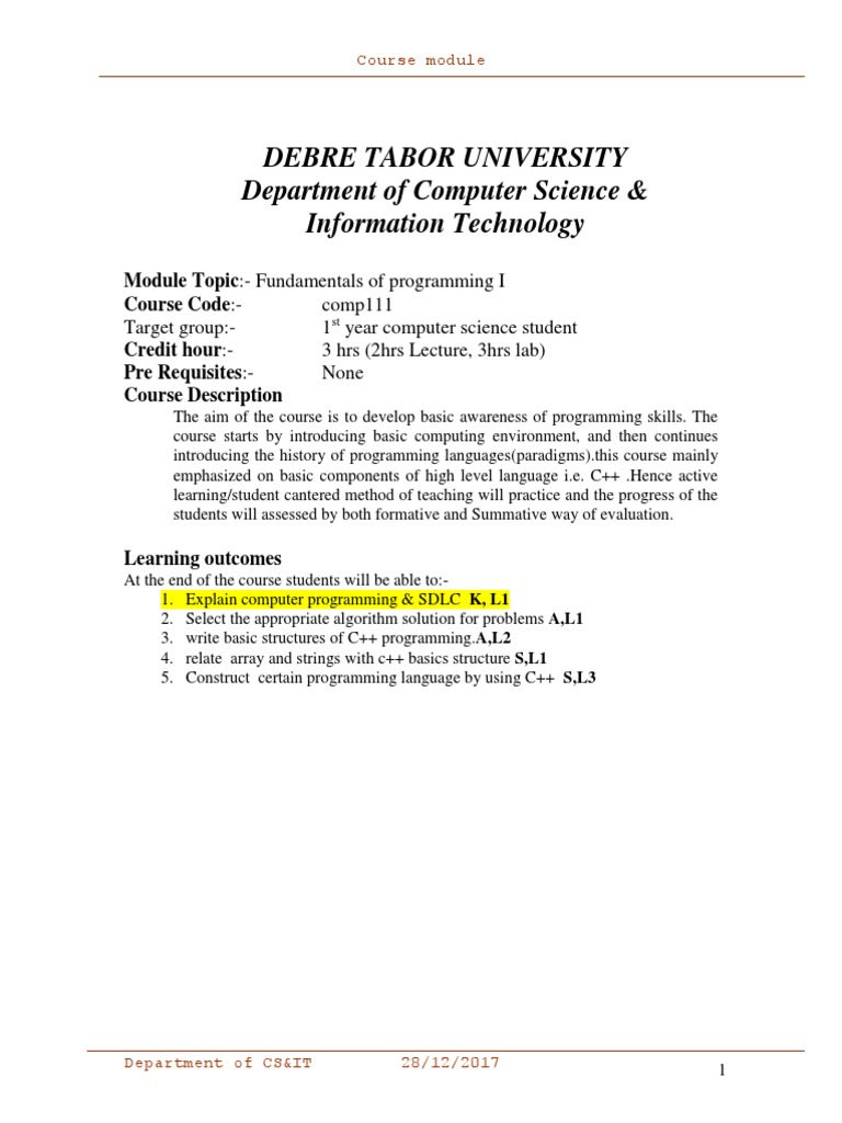 Module Topic:- Fundamentals of programming I