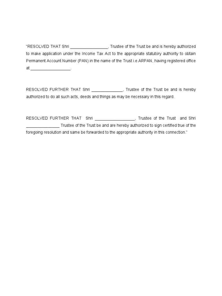 “RESOLVED THAT Shri _________________, Trustee of the Trust be and is hereby authorized