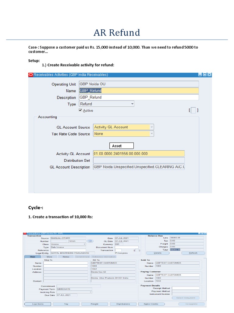 Case-: Suppose a customer paid us Rs. 15,000 instead of 10,000. Than we need to refund 5000 to